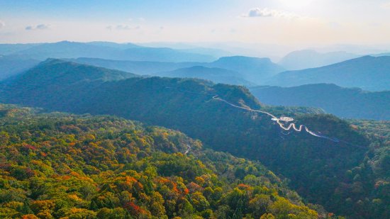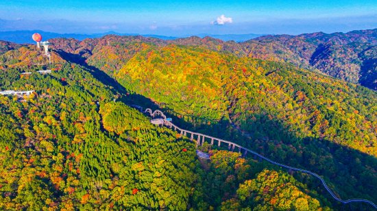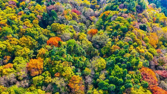 初冬时节,四川省宣汉县月亮坪乡村振兴示范区迎来高光时刻。放眼望去,万亩林海层林尽染,红枫、银杏等植物交织成一幅五彩斑斓的迷人画卷。有的游客在蜿蜒的“树冠云廊”上漫步,俯瞰这片迷人的景致;有的在静谧的森林步道中穿行,感受“天然氧吧”的清新惬意。目前,彩林已进入最佳观赏期,吸引周边游客共赴这场绚丽的秋日之约。