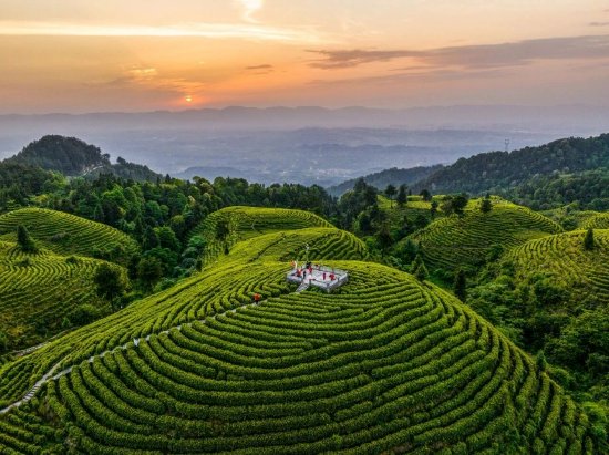 云峰茶谷中层层叠叠的茶梯田与远山相接,空气中弥漫着清新的茶香,薄雾如轻纱般笼罩着茶山,采茶人手指在茶树枝叶间轻盈跳跃,勾勒出一幅动人的田园画卷。万亩茶海绵延起伏,竹林溪流环绕,这里不仅是品茶爱好者的天堂,更是都市人逃离喧嚣的 “世外桃源”。