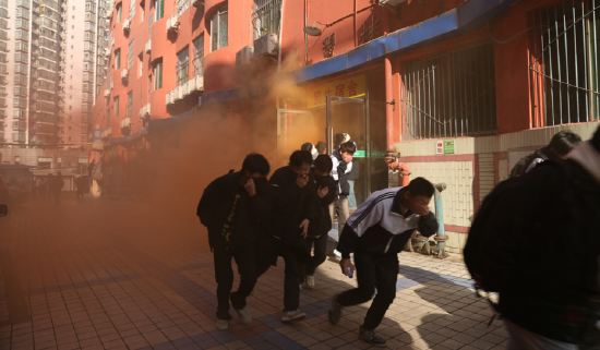 演练前,该校成立了专项工作领导小组,制定了翔实的实施方案。当天上午,学校通过校园广播对全体师生进行了消防安全知识培训。14:25,领导小组对演练准备工作进行最终检查;14:35,各楼层疏散引导员全部到位;14:40,随着疏散指令下达,演练正式启动。