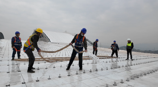 “目前项目已完成总工程量的60%。”中建八局达州南站项目施工主管任意坤介绍,其中南侧站房主体结构全面完工,金属屋面施工完成80%,玻璃幕墙施工完成10%;高架站房承轨层及站台层以下结构全部完成,承轨层及站台层以上主体结构完成80%。