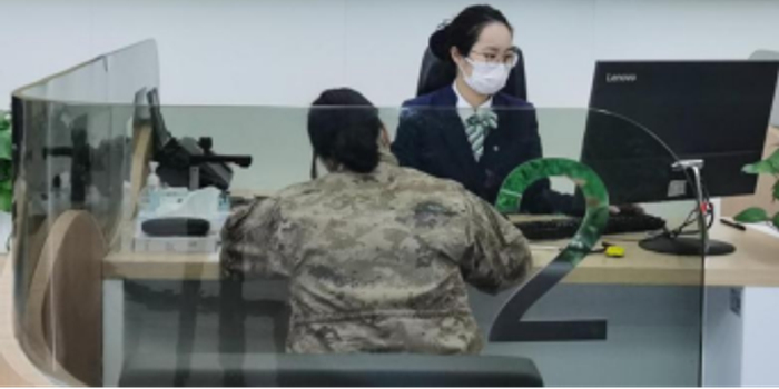 窗口柜员微笑接待了这位女军官。经了解,客户因个人信息发生变更,影响了相关保单权益的正常享有。柜员在递上温水安抚情绪的同时,熟练操作系统,高效完成了个人信息更新及相关业务办理。