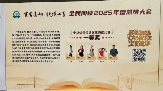 从机关单位到校园社区,从城市书房到乡村书屋,阅读已成为达州凝聚人心、赋能发展的重要纽带。据统计,2025年达州全民阅读工作获得中省市媒体报道800余条,形成强大传播声势。展望2026年,达州将在机制创新、品牌深化、数字赋能、精准服务上持续发力,让“书香达州”成为中国式现代化达州新篇章中最动人的文化注脚。 (杨涛)