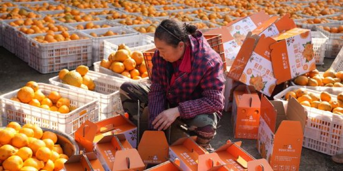 大雅柑迎来丰收,果农正在进行分拣、装箱