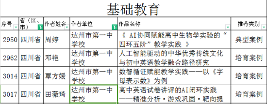 达一中四名教师在教育部2025年教师人工智能应用案例征集中获奖