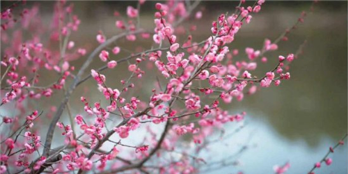 莲花湖湖边梅花朵朵开,映着清波荡漾