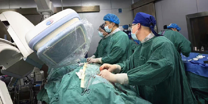 “患者的核心难点在于解剖结构特殊,器械输送路径受阻、瓣膜定位难度呈几何级增加,且体重过轻导致耐受度极低,任何操作偏差都可能引发致命风险。”苟华良介绍,MDT团队迅速集结后,麻醉科完成气道管理与循环稳定方案制定,超声医学科通过超声心动图精准量化瓣膜狭窄程度与心功能状态,医学影像科利用三维重建技术构建血管立体模型,为手术路径规划提供可视化支撑,血管外科、介入医学科研判经颈总动脉入路的可行性。经过多次专题研讨与模拟推演,MDT团队创新性提出“颈总动脉入路+三维影像导航”手术方案,突破了传统手术入路的技术禁区。