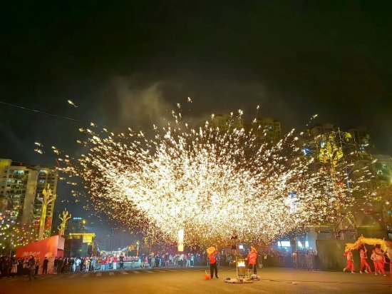 舞火龙、打铁花与火壶表演(梁乔 摄 )