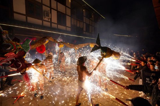 白天漫步中国红色第一街,感悟红色基因、品读古镇文脉,夜晚见证非遗烧火龙,腾空而起共赏,铁火鎏金燃动巴山新春。(来源:达川文旅)