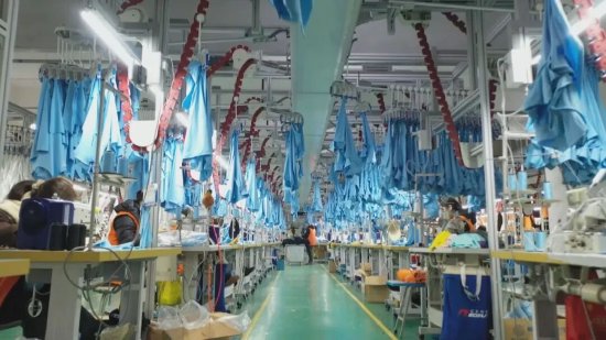 四川非寻服装有限公司生产厂长 邓响亮:我们年前接到订单已有50万件,已经排到今年的5月,超去年同期10万件左右,同比增长了20%。