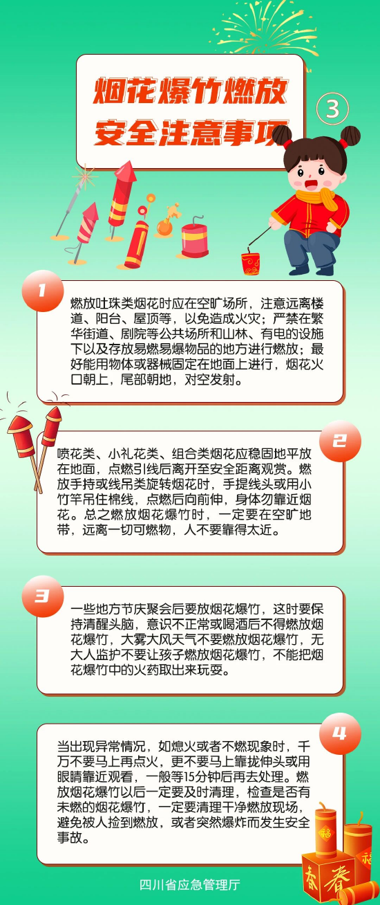 有关部门提醒,符合燃放计划的市民,请严格遵守安全燃放相关规定,认真落实安全指南,杜绝各类安全事故发生,共同维护良好的节日环境。(杨涛)