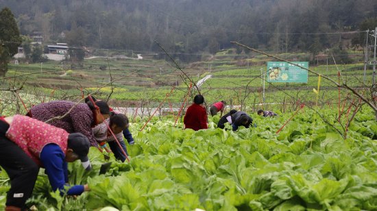 “企业免费提供种子、派专人指导种植,还有区农业农村局技术员常态化下沉田间地头,手把手教我们播种、施肥、病虫害防治,种出来的青菜品质有保障,销路更不愁。”宝泉村党支部书记杜美松介绍,“金果梨+甜糯玉米+青菜”套植基地每天可吸纳二十余名村民务工,人均日薪60元,优先吸纳脱贫户、监测户就业,让群众实现就近稳定增收。