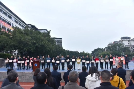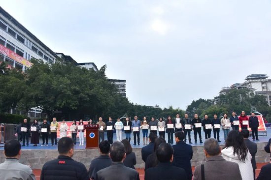 升旗仪式学校纪委书记杨霜宣读《四川省达州中学关于表扬2025年秋季教学能手、优秀教师、十佳班主任、优秀班主任、优秀生涯导师、民族团结先进个人、优秀安全员、先进教育工作者的决定》,校级领导依次为获奖教师代表颁奖,表扬他们在教育教学、班级管理、校园安全、生涯指导等工作中的辛勤付出与突出贡献。教师代表发言谯小波在讲话中向全体师生员工致以新学期最美好的祝福和最诚挚的问候,并简要回顾了学校2025年的办学成果,充分肯定2025年学校中高考成绩实现跨越式发展,拔尖创新人才培养工作渐成体系,办学质量与育人成效得到社会广泛认可。