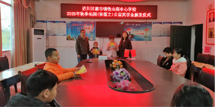 达川区渡市镇铁山南中心学校举行2025年秋季佑国公益奖学金颁发仪式