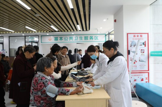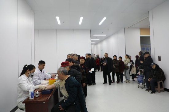 “社区提前就通知了,我们老邻居约着一起来。”她测完血压一边挽袖口一边说,“又不收钱,还查得仔细,比自己去医院还方便!”