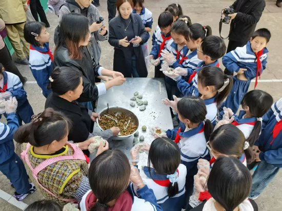 “我今天包了三个清明粑,我要拿回去给我的家人分享。这次活动让我不仅知道了清明节的来历,我还学习到了许多清明节的诗文,现在又学会了包清明粑,中国传统文化真是博大精深!”石铁乡中心校三年级学生曾紫涵手拿清明粑高兴地向记者展示了她“丰收”的成果。