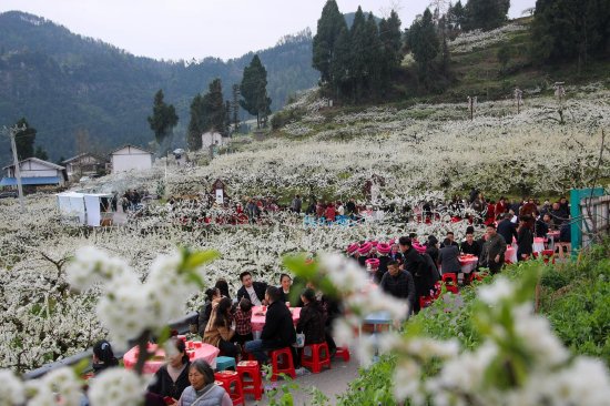 阳春三月,李花如雪,2026年宣汉县庙安镇“花在庙安”乡村旅游消费季活动在李花广场如约启幕。正午时分,一场别开生面的花海坝坝宴热闹开席,游客们围坐其间,身旁是如雪李花,眼前是热气腾腾的农家菜。