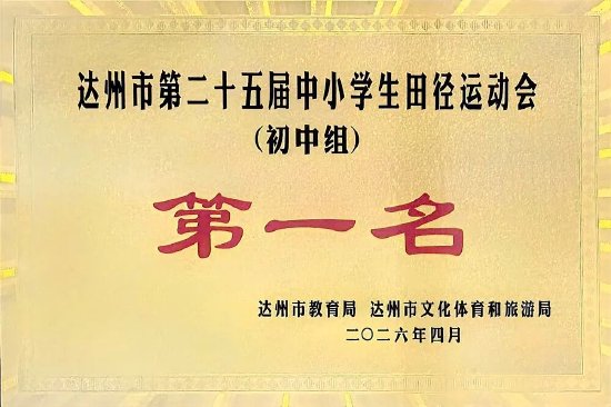 关注日前,达州市第二十五届中小学生田径运动会落幕,本届运动会以“奔跑校园,活力达州”为主题,汇聚全市81所学校104支代表队、1000余名运动员同台竞技。达州市第一中学校初中组运动健儿奋勇拼搏,以8金7银3铜的战绩,打破8项市运会单项纪录,凭279分荣获初中组团体总分第一名。