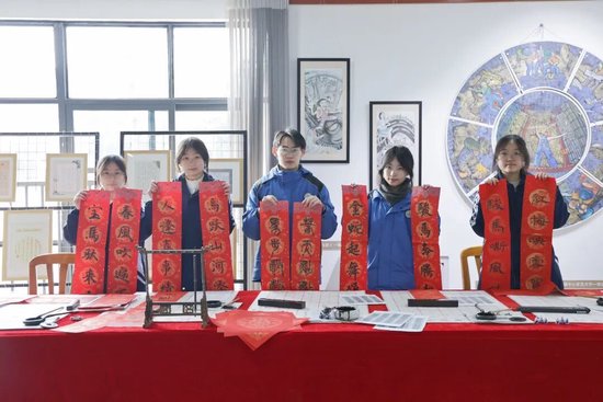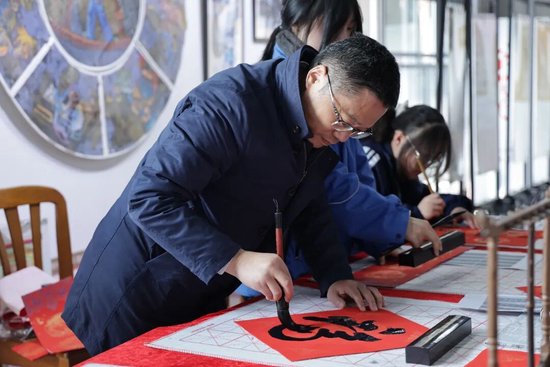 上午半天论坛结束后,学校副校长杨关键带领学生在一楼艺术展厅现场挥毫送“福”,笔墨传情,传承文化;历史、生物、木工、版画等四雅课程作品集中亮相,展现了“融创·贯通”理念下的育人实践与课程魅力。