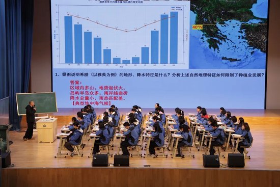 教学分论坛上,李佳伟老师执教的政史地融合课程《文明基因与时代脉络——从环境决定到合作共赢》,立足地理学科跨界属性与探索自然环境对人类生产生活影响的本质,以比较地理为背景,融合地缘政治学与历史地理学理念进行设计,课程核心经三个教研组研讨敲定,锚定“一带一路”重大发展战略,通过多维度、多切口的学科融合方式综合分析问题,以宏观视角打破单一学科解读复杂议题的局限,让学生在跨学科的思维碰撞中拓宽了认知边界,涵养了家国情怀与世界眼光。