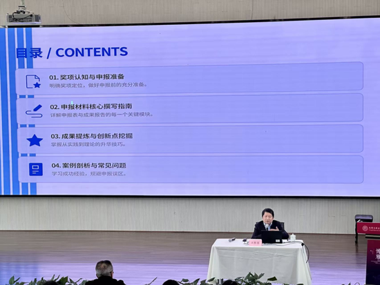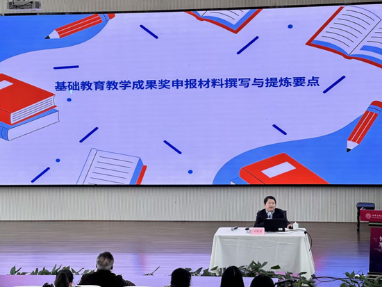 会议第二阶段移步木铎厅,余胜泉教授为全体与会教师带来了一场题为 “基础教育教学成果奖申报材料撰写与提炼要点”的专题讲座。