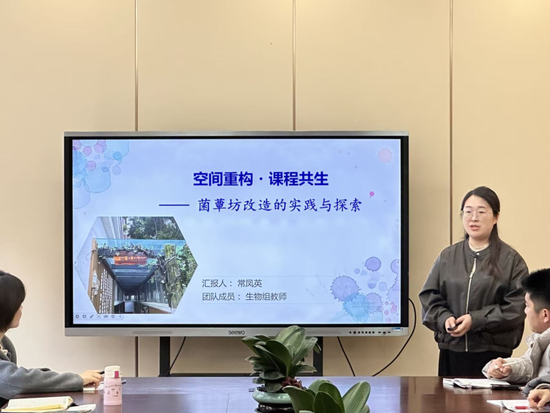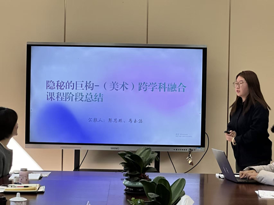 语文(王洁老师)、生物(常凤英老师)、地理(赵晶老师)、美术(马玉洁老师)四个学科组依次进行了限时汇报。汇报聚焦两大板块:一是上学期教学活动的简要总结、学生成果展示、教研亮点及PBL平台使用情况;二是本学期详实的课程计划,并着重将预期成果的形态作为汇报重点,体现了强烈的成果导向意识。