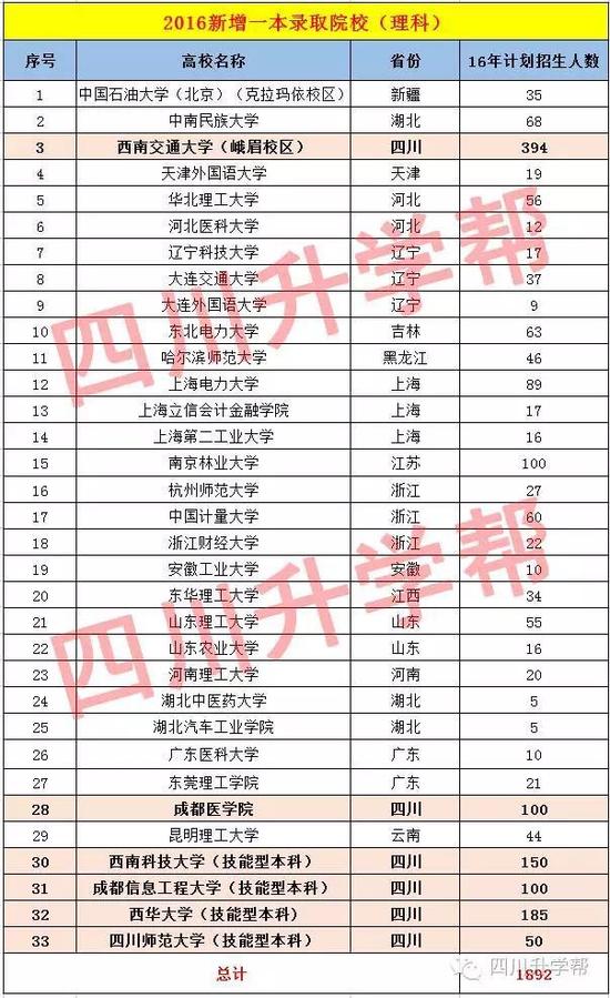 今年在高考前夕,省教育厅发布了5 增加的消息,提出 了211大学将增加在川招生计划。学校也都有所响应,但具体增加了多少,目前还没有具体的数据。