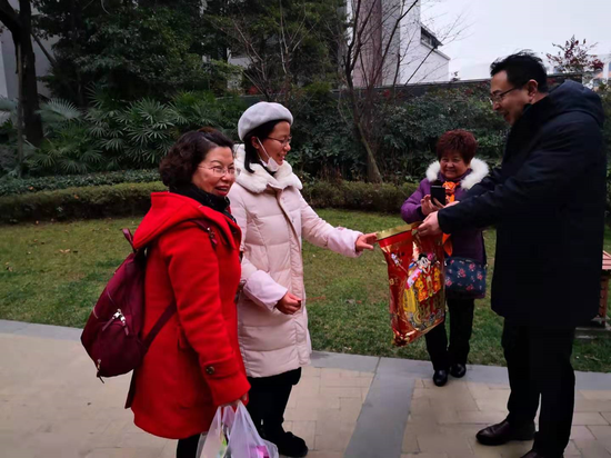 随后,慰问小组又分别来到病休的夏智勇、苟懿两位老师家中。凤校长为两位老师送去了新春问候。看到两位老师精神状态良好,大家感到非常高兴,希望两位老师安心养病,争取早日回到四中的大家庭中一起奋斗。