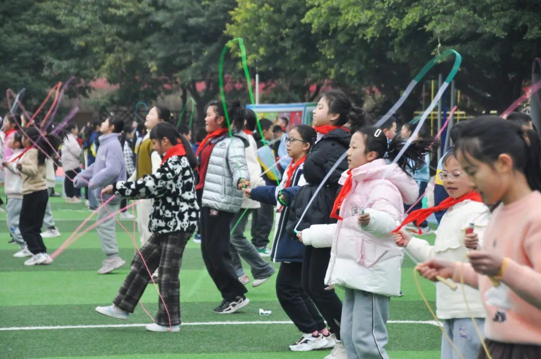 之后,进行的是“朝气蓬勃展新姿,跳进学期新征程”挑战赛。首先是以班级为单位的跳短绳竞赛,每位同学紧握着手中的跳绳,耳边的绳音像风经过。一根小小的绳子,连接的是快乐和运动。之后,各学段的学生分别进行了不同的运动项目,比如低段的好运连连,中段的捷足先登等。