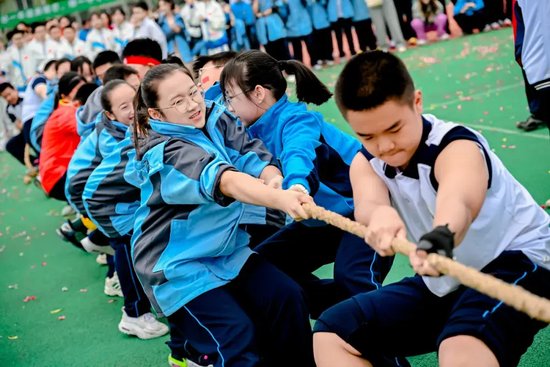 开幕式过后,拔河比赛紧张有序地展开。参赛选手们眼神中透露出必胜的决心,场地中央的绳子就像一条蓄势待发的巨龙,“大战”一触即发!