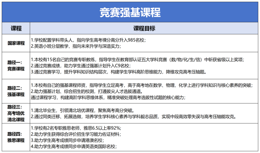 包含五大学科竞赛、强基计划课程、雅思课程等,适合理科能力强、目标顶尖高校的学生。
