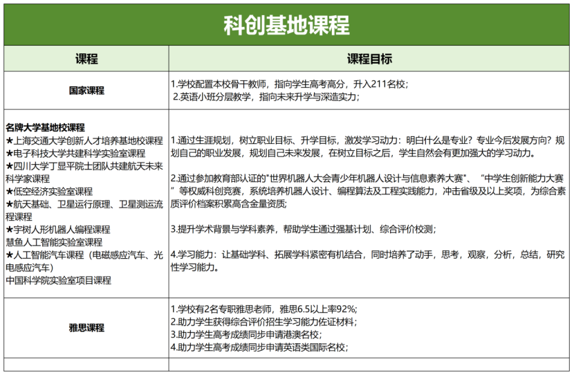 依托中科院等高校资源,开设科创课程,培养创新与实践能力。