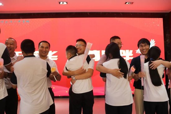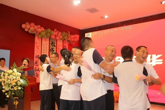 是父母,更是老师!为了更多的孩子,这些父母舍弃了很多陪伴家人的时光。可懂事的孩子永远在心里默默关爱、心疼着他们,用鲜花传递最真挚的祝福,以拥抱表达最深沉的爱。最后,孩子们一起为全体教职工送上节日祝福,致敬这些与爸爸妈妈一样无私奉献的引路人!