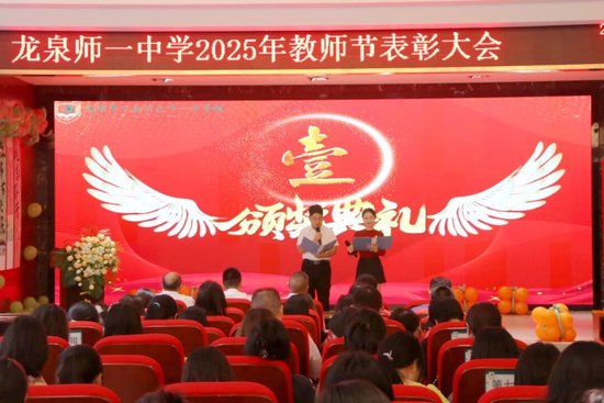 韶华如驶,记载着付出和辛劳,时光如掷,见证着积累和成长。为致敬全体教职工的辛勤付出与默默耕耘,弘扬教书育人、爱岗敬业的高尚师德,龙泉师一全体教职工于下午齐聚弘德厅,开展庆祝第41个教师节表彰活动。