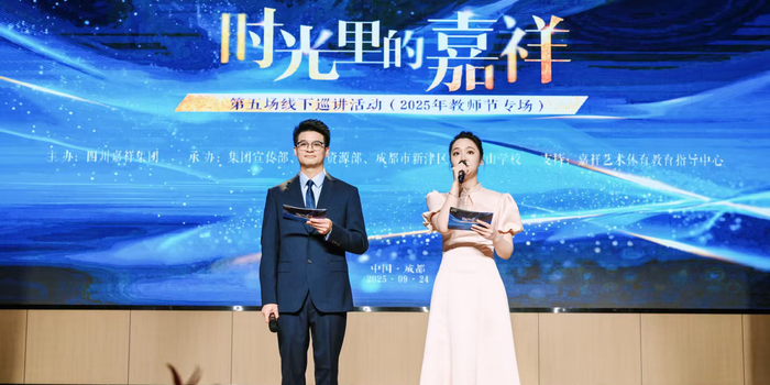 9月24日下午,“时光里的嘉祥”第五场线下巡讲活动(2025年教师节专场)在成都市新津区天府牧山学校举行。来自嘉祥集团的领导,各成员学校的教师代表齐聚一堂,聆听一场关于教育、关于成长的思想盛宴。