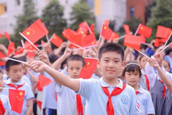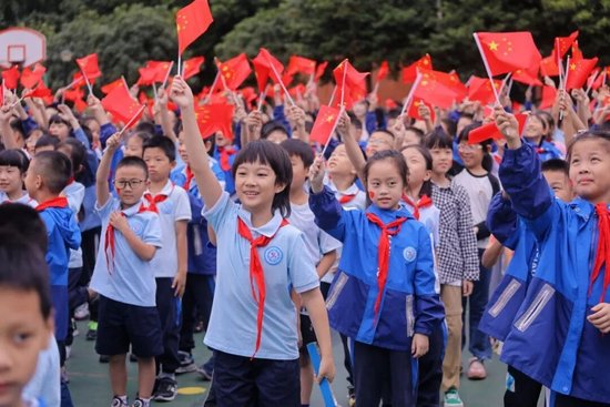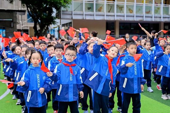 在悠扬绵长的合唱声中,全体师生手挥国旗,共同用歌声表达对祖国的热爱。这一刻,没有年龄的界限,没有身份的差别,只有建小人对祖国的共同祝福!