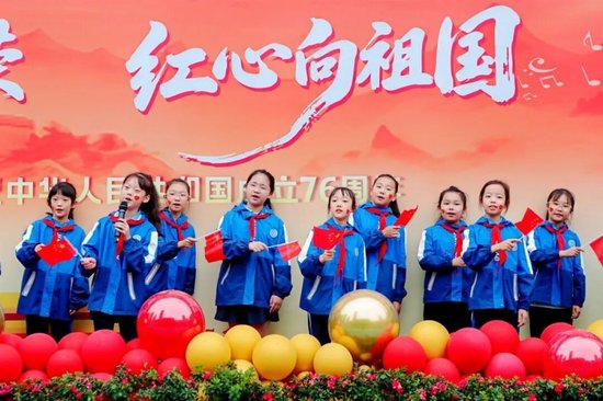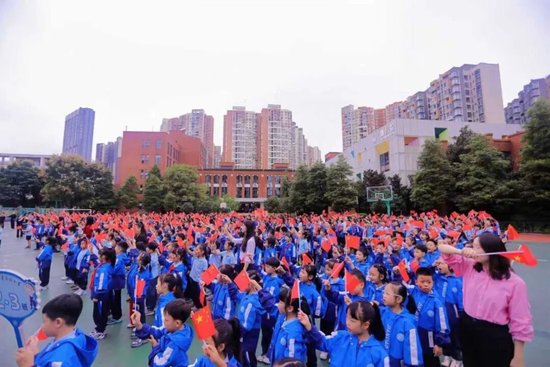 秋色盈庭,丹桂缀枝。在中华人民共和国迎来76周年华诞之际,“歌声忆峥嵘·红心向祖国”国庆庆祝活动在成都市建设路小学三校区同步举行。全校师生共同参与,以歌声为笔、以热爱为墨,将爱国情、强国志、报国行融入激昂的旋律。此次活动是向祖国生日的献礼,更是学校践行“为党育人,为国育才”这一初心使命的生动实践。
