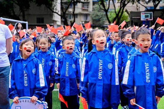 “当手中的国旗和胸前的红领巾一起飘扬时,我突然明白‘遇见·育建’不是一个人遇见什么,而是我们所有人一起遇见共同的‘家’,我们这些建小娃,就是在这样的‘遇见’里,慢慢长成爱祖国的样子。”