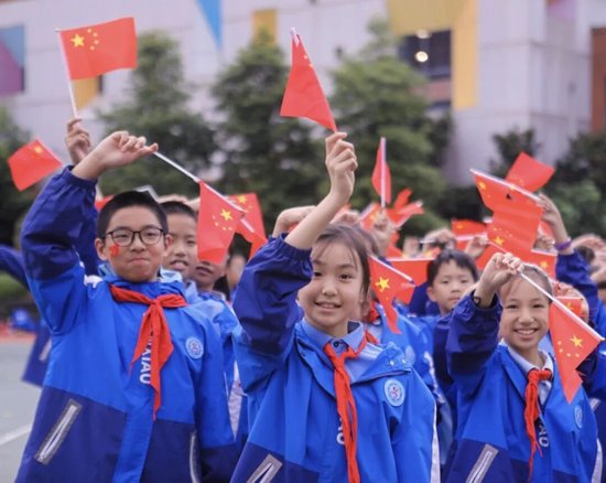 “我看着台下一年级的小弟弟小妹妹举着小国旗晃,突然觉得开学典礼上校长说的‘遇见热爱’,就是把心里的话大声唱出来,还想让所有人都听见。”