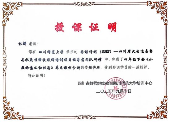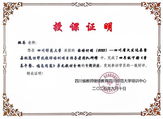 关注近日,在“国培计划(2025)——四川省欠发达县整县托底性帮扶教师培训项目”中,成都市建设路小学8位数学教师凭借深厚专业积淀与教学智慧,光荣承担专题讲座任务,以高质量分享彰显建小教育风采,为区域教育均衡发展注入鲜活力量!