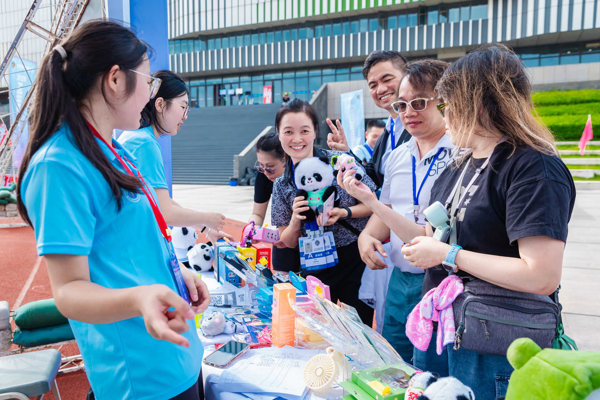 本次赛事的一大亮点在于深度践行文体旅融合发展理念,推出了富有“四川特色”的实践。组委会引入高校“乐染”大师工作室,将古称“蜀缬”的千年扎染技艺带到现场,让参与者在沉浸式体验中感受非遗底蕴。同时,掐丝珐琅、川剧脸谱绘画等互动项目同步开展,让赛场洋溢着浓郁川味文化气息。文创展区大熊猫、三星堆、金沙遗址等特色商品精彩亮相。