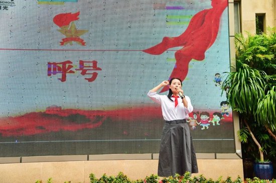 “我热爱中国共产党,热爱祖国,热爱人民,好好学习,好好锻炼,准备着:为共产主义事业贡献力量!”戴上红领巾的新队员们,在队旗下庄严宣誓。声音洪亮,眼神坚定,誓言铿锵有力。