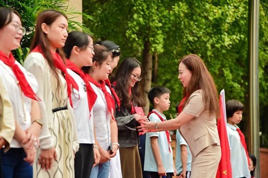 学校党支部书记、少工委主任及其他校级领导为新建中队授予中队旗,并为新中队的辅导员颁发聘书。中队辅导员们接过沉甸甸的聘书,承诺将用心陪伴队员们成长。