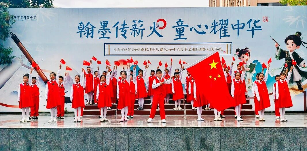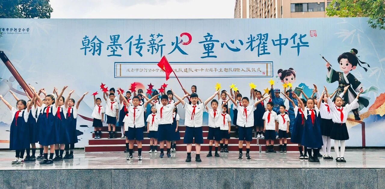在中国少年先锋队建队76周年之际,成都市沙河堡小学以“强国复兴有我 争当新时代好少年”为主题,举行庆祝少先队建队76周年主题队日暨新队员入队仪式。全体队员以庄严的仪式、赤诚的担当,践行“强国复兴有我”的时代誓言,续写红领巾的精神谱系。