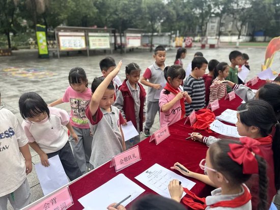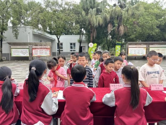 经过认真学习,考核环节如期而至。学校大队委的同学们组成“考核小组”,化身严格又暖心的小考官,一对一检验二年级同学的学习成果。“请你说说队徽上各部分代表什么?”“试着唱一段队歌吧!”面对提问,同学们挺直腰板、自信应答,规范完成每一个动作。最终,27名同学凭借扎实的知识和熟练的技能,成功通过考核,拿到加入少先队的“入场券”。