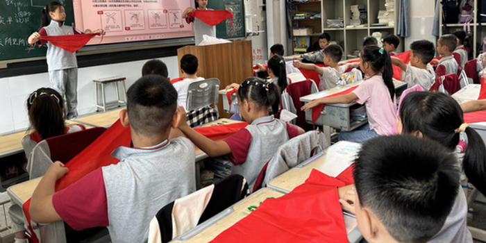 入队准备的第一站,是干货满满的知识学习课。校园里的红领巾讲解员们化身小老师,走进二年级的教室,逐字讲解“六知六会一做”的内容。从队名的由来、队旗的象征意义,到系红领巾的步骤、敬队礼的标准姿势,讲解员们一边示范一边叮嘱,把红色知识悄悄送进每一颗期待成为少先队员的小小心灵里。
