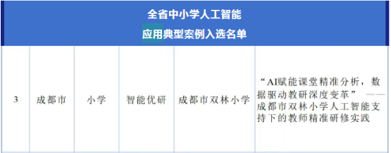 ·学校作品《“AI赋能课堂精准分析,数据驱动教研深度变革”》入选四川省中小学人工智能教育应用典型案例