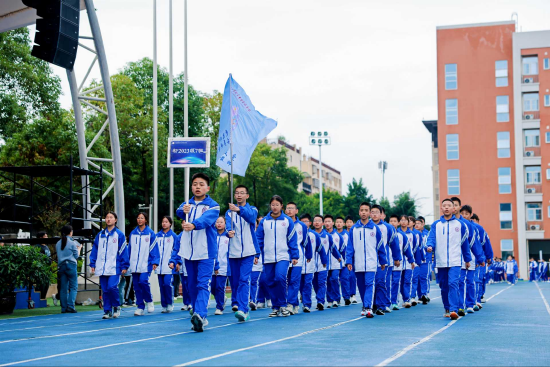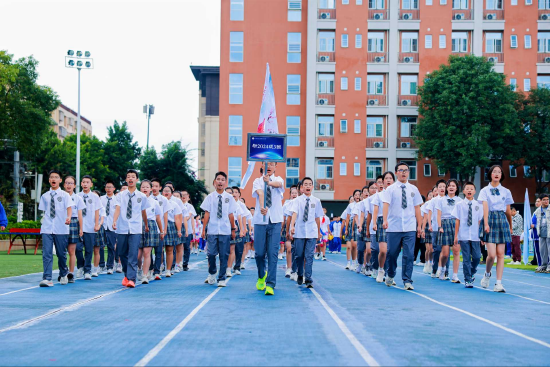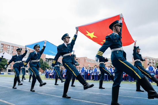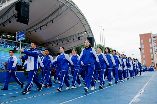 在雄壮的《运动员进行曲》中,国旗护卫队率先入场,他们步伐坚定、气宇轩昂,象征着学校勇往直前、追求卓越的精神底色。