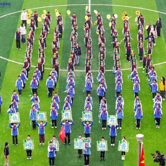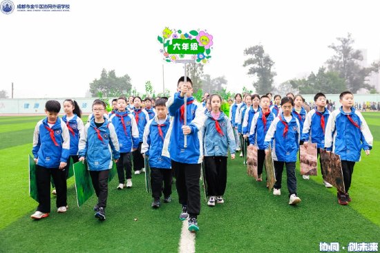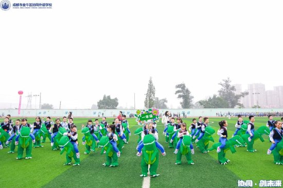 小学部六个年级的方队依次入场,可爱的“恐龙操”、风车舞、环保主题拼图……展示协同外语小学部特色校本课程——“协同时光课程”的育人成果。