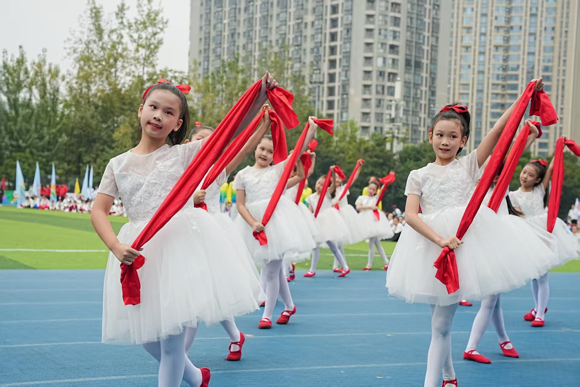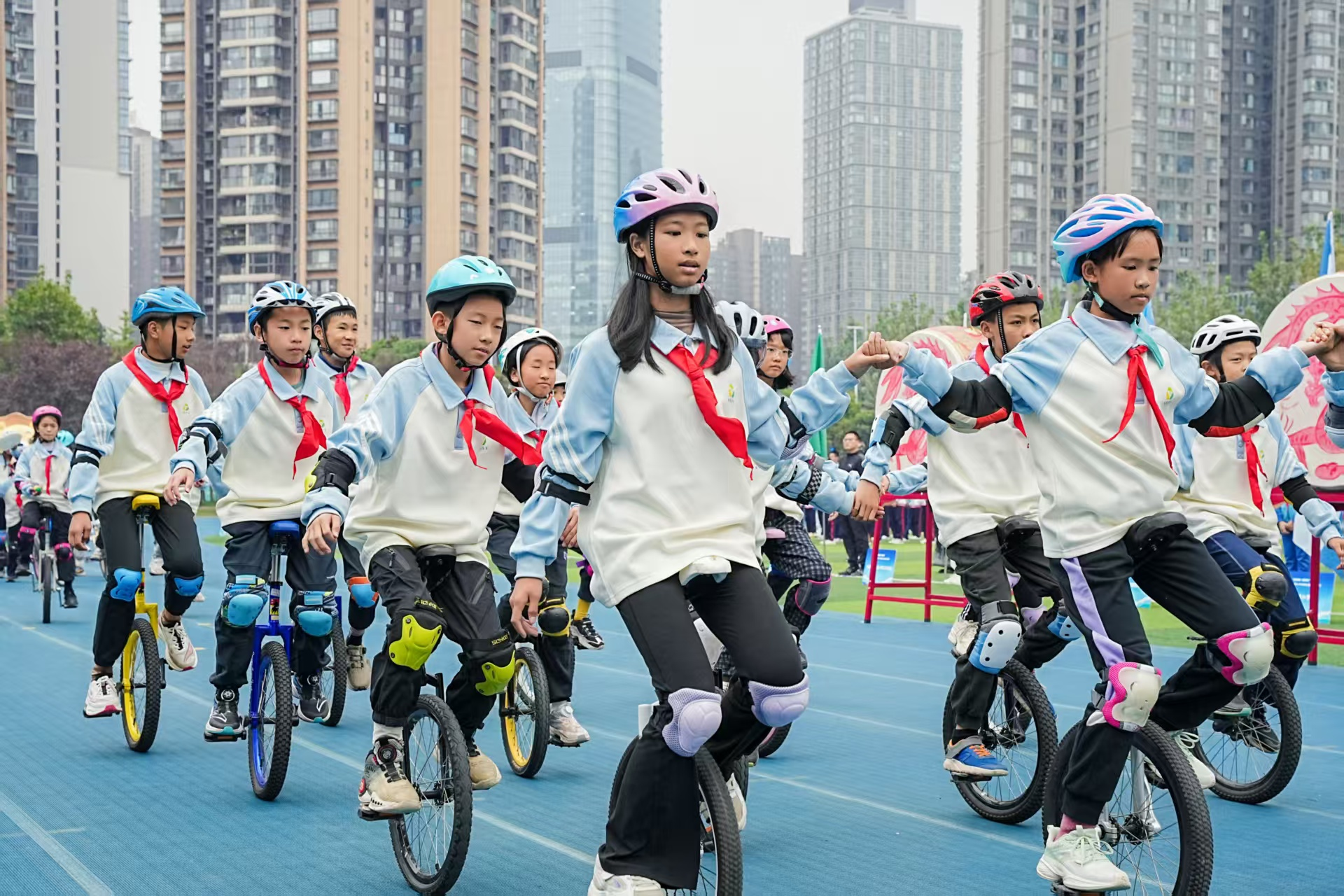 目前,全区中小学体育课时达标率已达100%,学生体质健康优良率较十年前提升一倍。