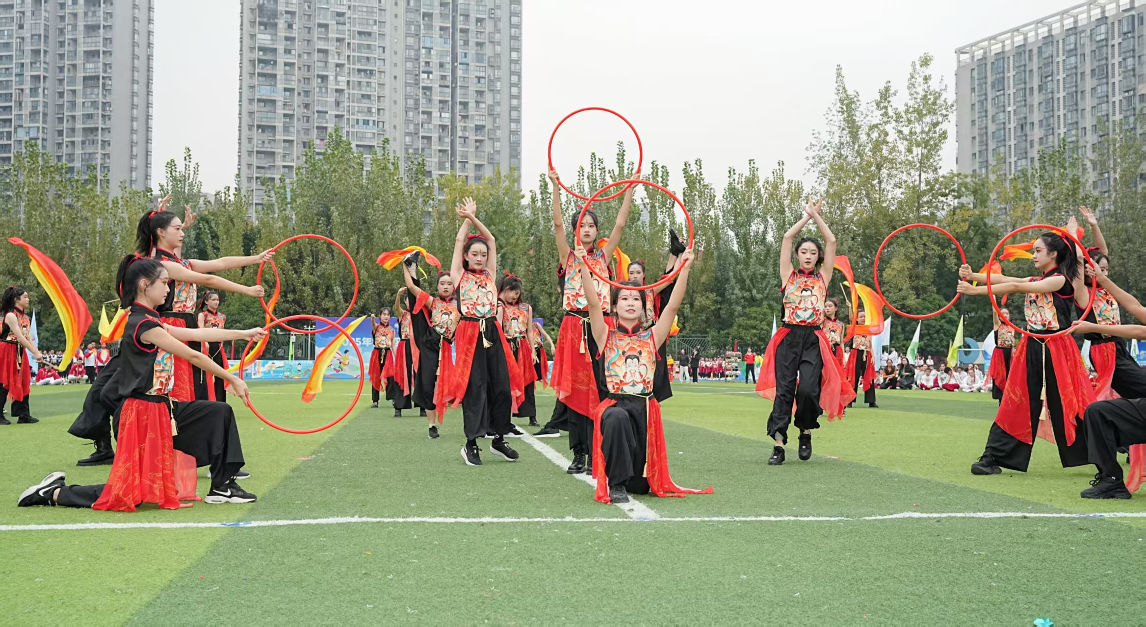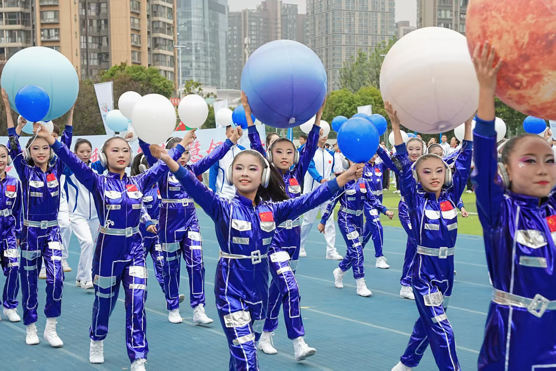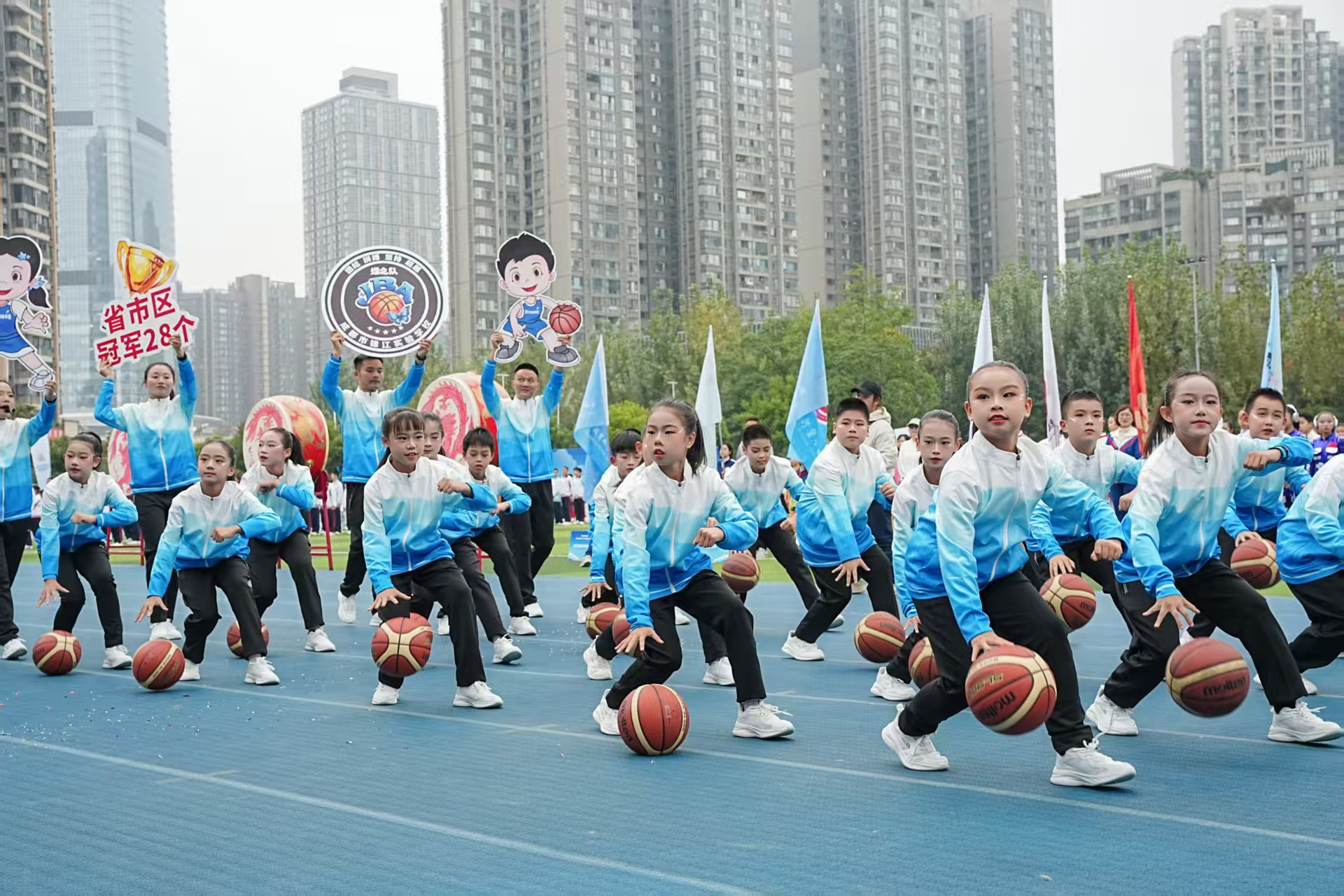 篮球、足球、羽毛球、棒垒球……入场仪式中,各学校通过形式多样的表演,集中展示了该校特色体育项目,同时也为大家带来了一场精彩的视觉盛宴。